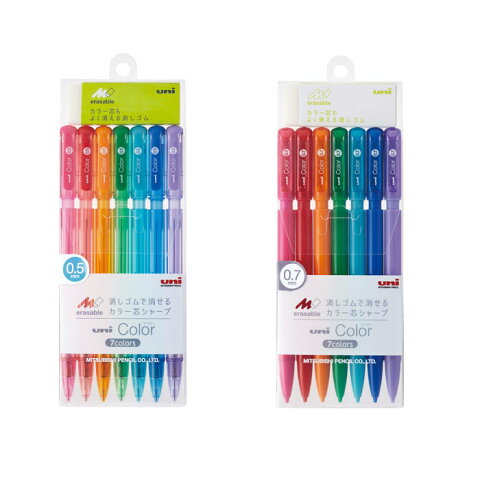 【三菱鉛筆】ユニカラーシャープペンシル 7色セット 消しゴム付き カラー芯