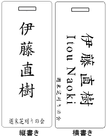 備考欄での彫刻記入例 ・ラッピング 無料ラッピング ・向き 縦書き ・文字 伊藤直樹(書体:D) 追加部分:週末芝刈りの会(書体:D)名入れの検討 ギフトラッピングについて