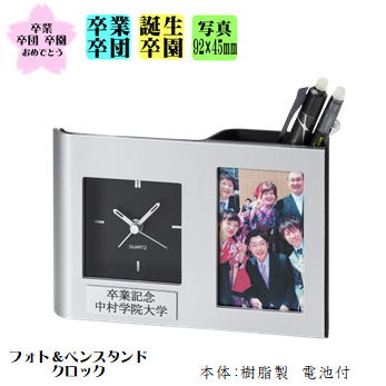 フォト&ペンスタンドクロックス【残りわずか!】トロフィー【ブロンズ】(樹脂製・電池付き)卒業記念品・卒団記念品 部活 卒業・引退記念品 置時計 プレゼント ギフト サッカー/野球/ゴルフ/バレー/バスケ★★レーザー名入れ代無料★