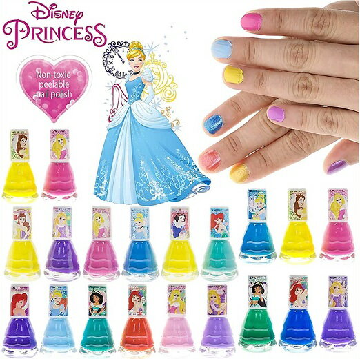 ディズニープリンセス キッズ用 ネイルセット はがせるマニキュア 18本セット ディズニープリンセスが大好きなお子さまに。