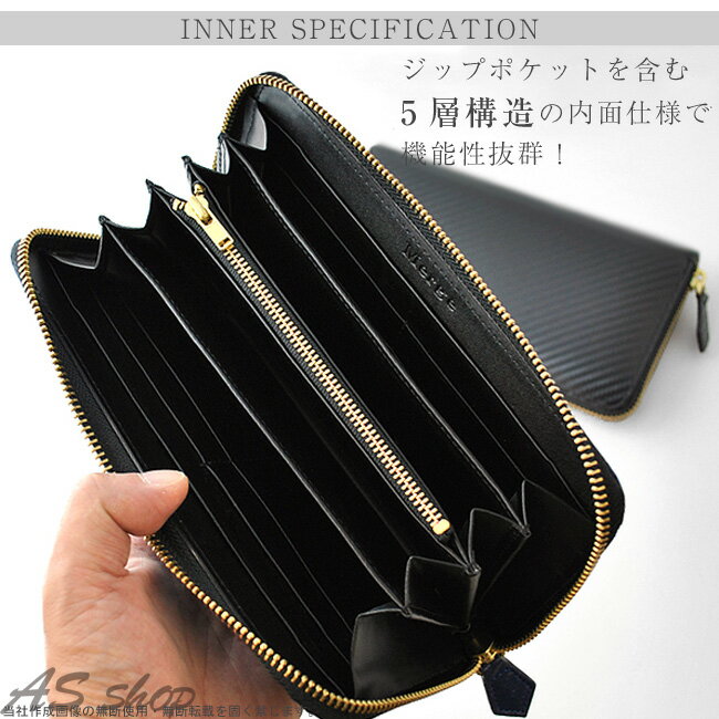 【送料無料】長財布 メンズ ラウンドファスナー【Merge】 カーボン加工 × 牛革 ラウンドファスナー長財布レザー サイフ ブランド チェック カッコイイブラック ネイビー クロ 紺 マージ