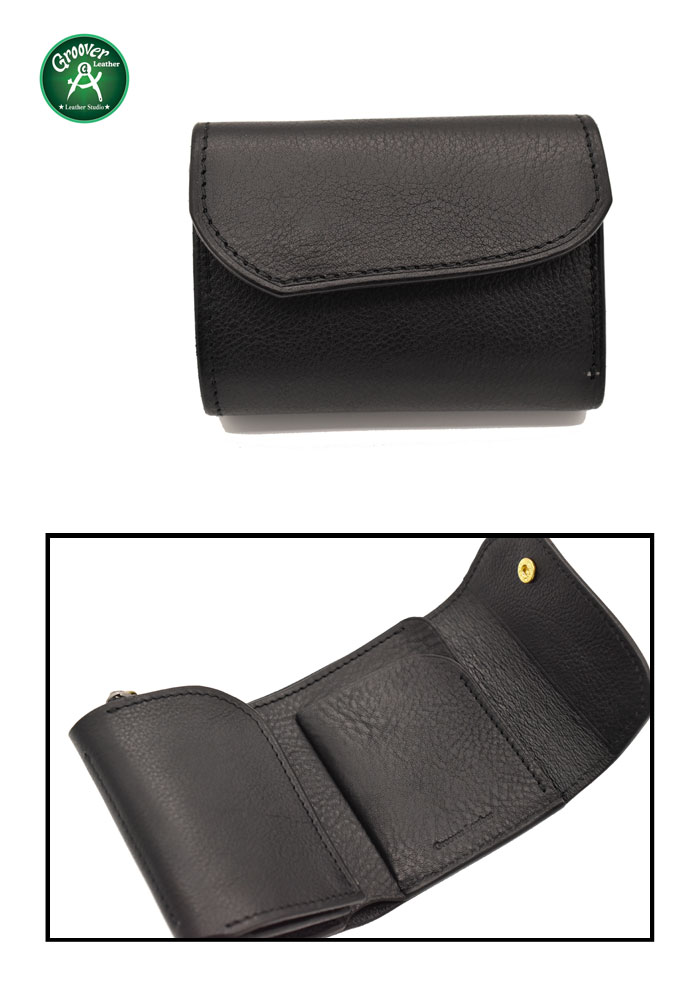 【正規取扱店】【父の日 ギフト】手に収まるコンパクトウォレット≪Groover Leather グルーバーレザー GMS-100 三つ折りミニウォレット プレーン ブラック≫レザー 牛革 日本製 三つ折り財布 メンズ 財布 かっこいい 本革 ウォレット ミニ財布 レディース 財布 かわいい