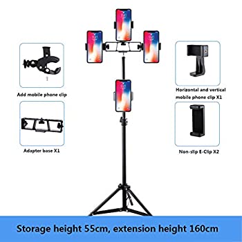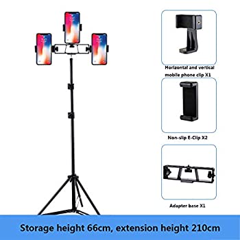 【中古】三脚電話フロアスタンド、ライブサポートポータブルSelfieスティック多機能4カメラリモコン付きのリビングルーム屋外用のスマートフォンモデルと